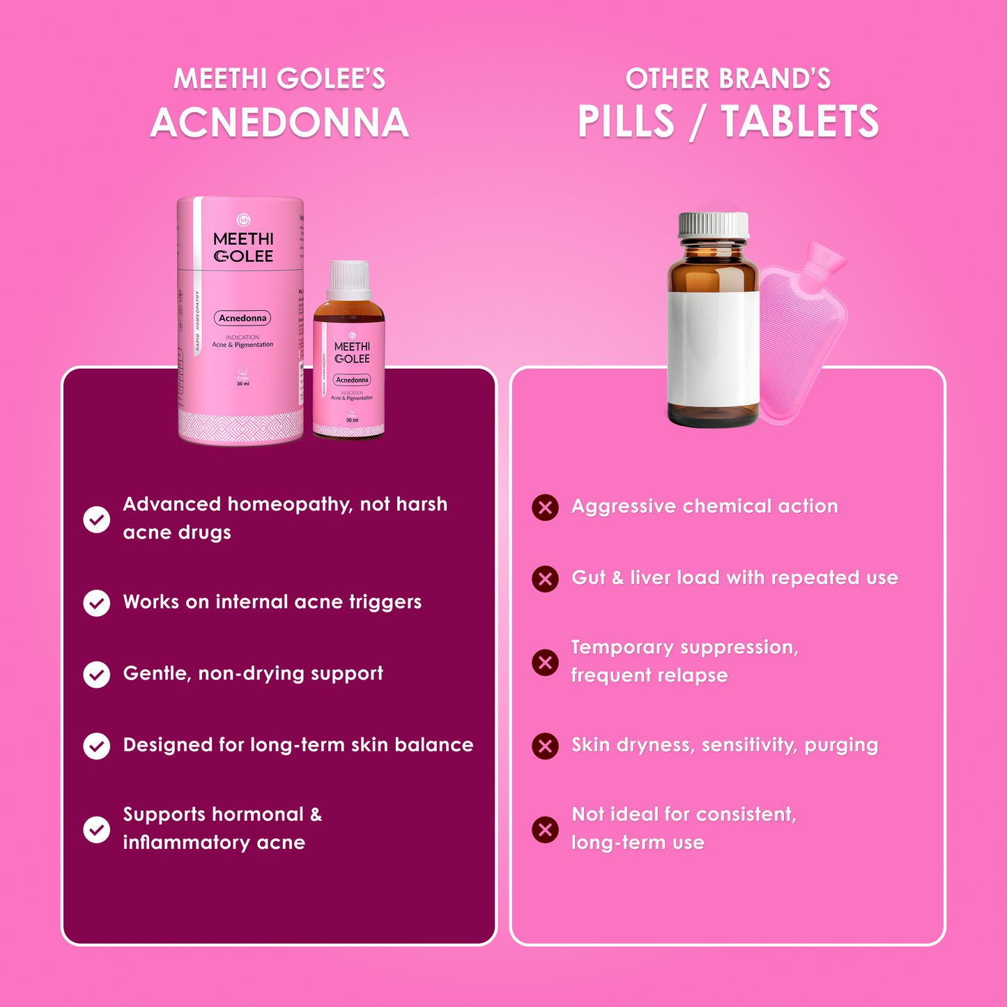 Acnedonna is effective for all sorts of skin concerns like hormonal acne, blemishes, scars, and in enhancing the overall skin texture and health.