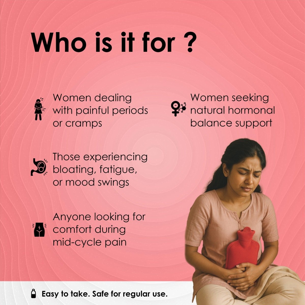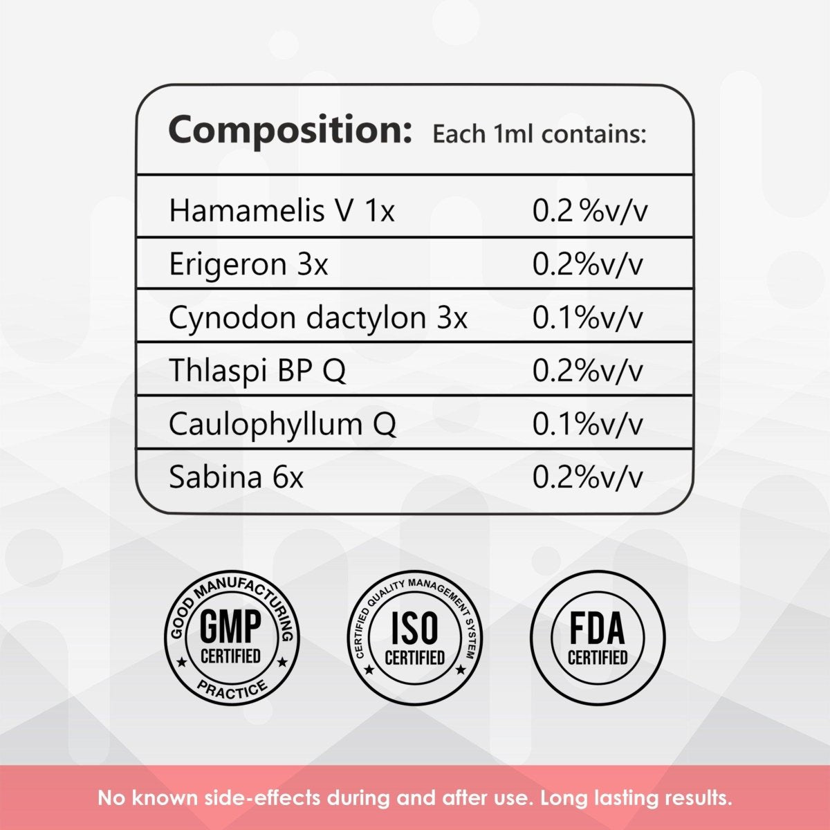 Take 10–15 drops in a little water, 3 times a day during your period (or just before it starts if your cycle is predictable). You can also follow your doctor’s advice if you have specific needs.