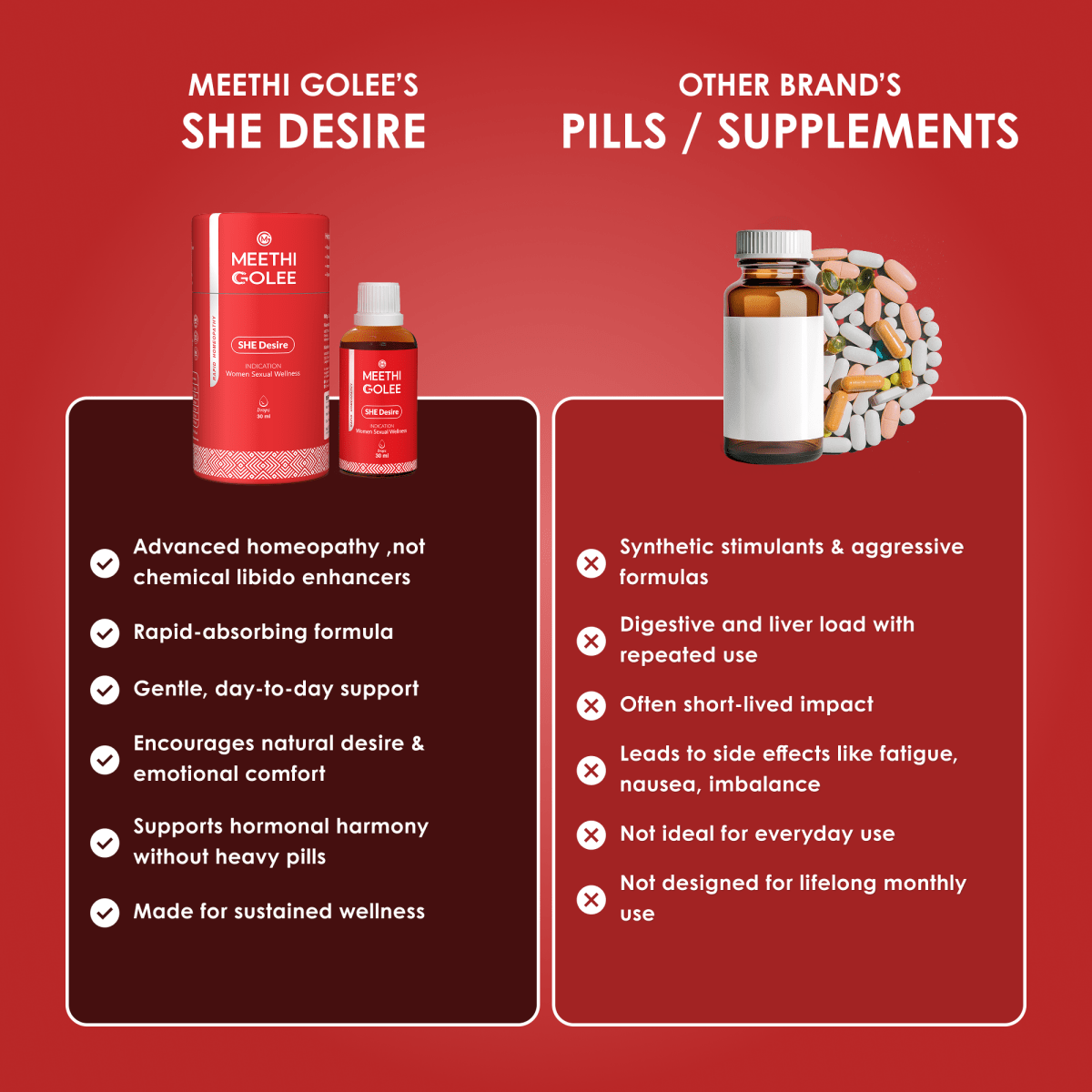 Women’s pleasure and wellness have been a hush-hush topic for far too long - but NOT anymore. We’re breaking the silence with a gentle yet powerful solution: a Homeopathic Formula crafted specifically for Women’s Sexual Wellness.